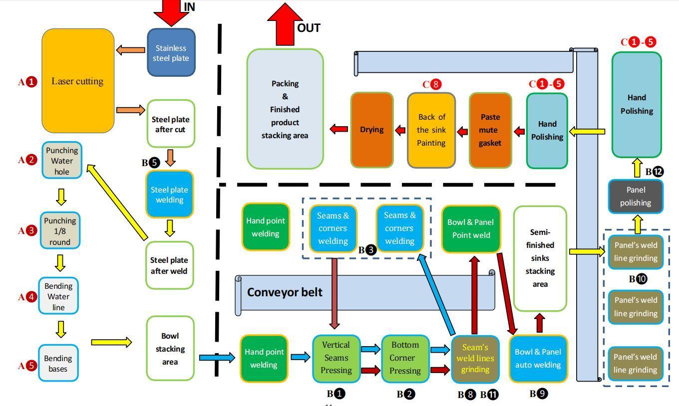 Η γραμμή αυτή ενσωματώνει προηγμένα έξυπνα συστήματα ελέγχου με μηχανήματα ακριβείας για την παροχή χειροποίητων νεροχύτων υψηλής ποιότητας.και έξυπνη συγκόλληση, διατηρώντας ταυτόχρονα βασικές χειροποίητες βελτιώσεις για υψηλής ποιότητας φινίρισμα.